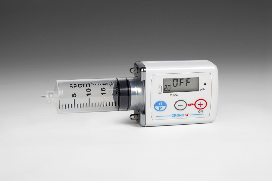 Hochpräzise ambulante Infusionspumpe für die subkutane Therapie mit 10 oder 20 ml Reservoir. Wird in der Therapie der PAH sowie in der Palliativmedizin angewendet.
